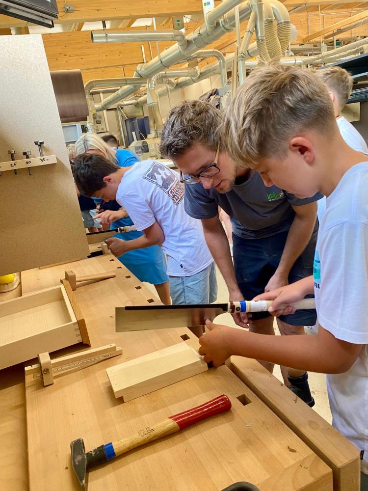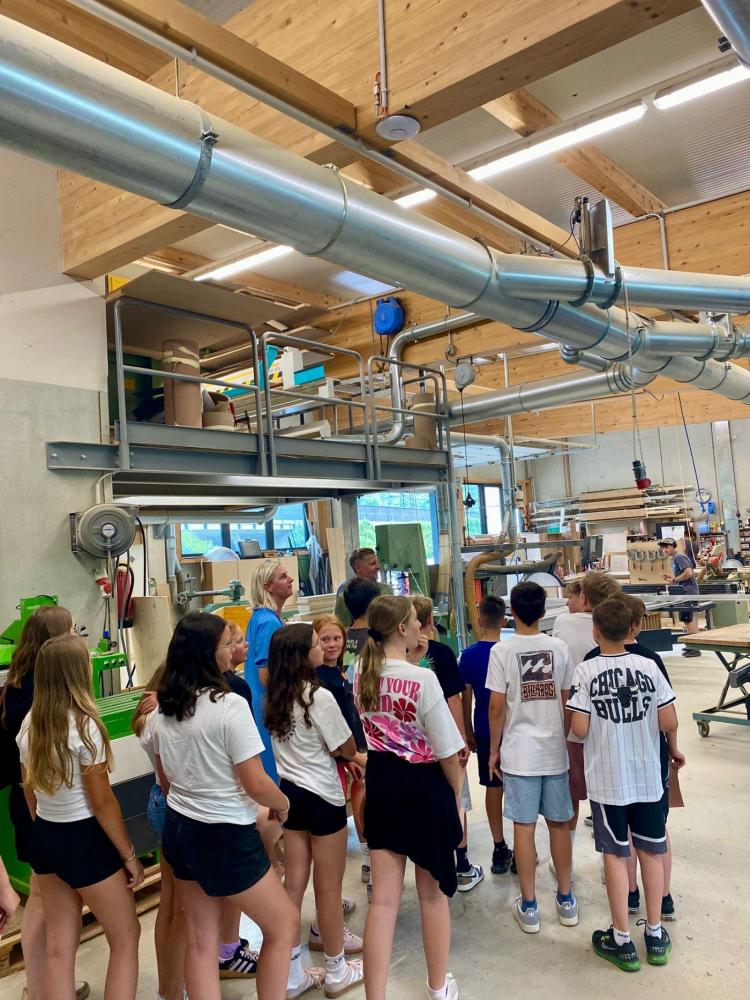 Im Rahmen des Berufsorientierungsunterrichts besuchte die Klasse 2B der Mittelschule Zell am Ziller den Tischlereibetrieb Wohnplan. Die Schülerinnen und Schüler bekamen dabei spannende Einblicke in die vielfältige Arbeit eines Tischlers und den Ablauf in einem modernen Handwerksbetrieb.