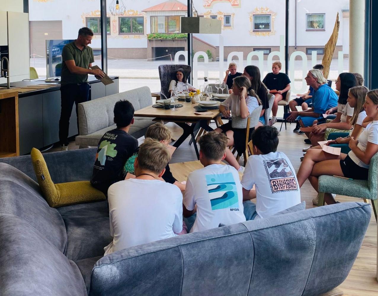 Ein besonderes Highlight war das Gespräch mit einem Mitarbeiter, der von seinem Weg zum Tischler erzählte: Seine Begeisterung für Holz wurde ihm vom Vater, ebenfalls Tischler, weitergegeben. Auch die Aufgaben der Lehrlinge wurden thematisiert: Vom ersten Bearbeitungsschritt bis zum fertigen Möbelstück helfen sie tatkräftig mit.