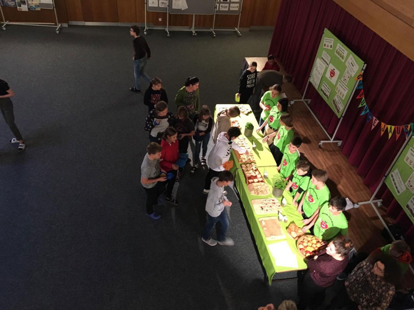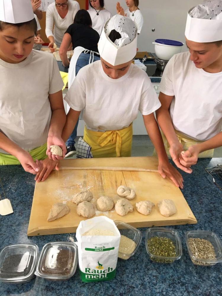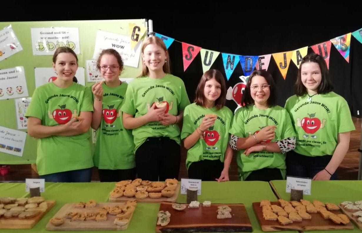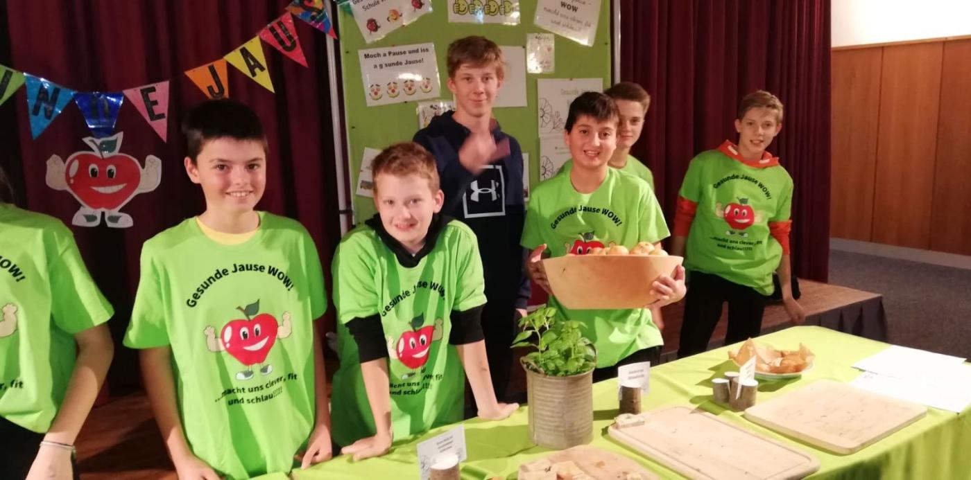 Mit dem Grundgedanken, dass eine gesunde Jause auch fitte, motivierte Schüler/innen fördert, wurde mit den Schüler/innen der Klasse 3c am Montag und Dienstag geknetet, gebacken, wurden Aufstriche zubereitet und Brote gestrichen. 63 Schüler/innen der 3. Klassen griffen in der großen Pause gerne zu und schnappten sich für den zusätzlichen Vitaminkick Tiroler Äpfel.
