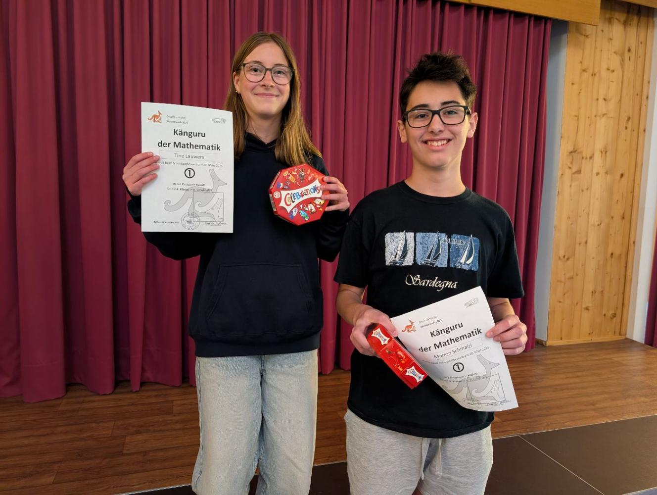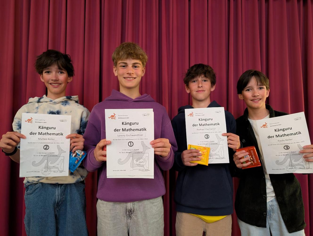 Am 20. März 2025 haben unsere Schülerinnen und Schüler am Wettbewerb "Känguru der Mathematik" teilgenommen. Mit kniffligen Aufgaben begeistert der Wettbewerb Schülerinnen und Schüler aus aller Welt. Allen Teilnehmenden gebührt Anerkennung für ihren Einsatz und ihre Begeisterung für Mathematik.