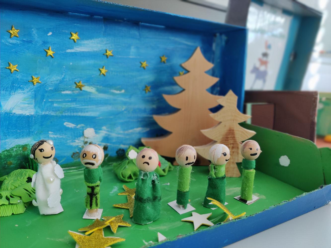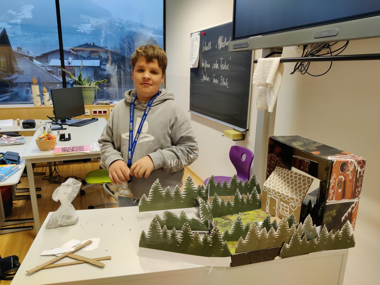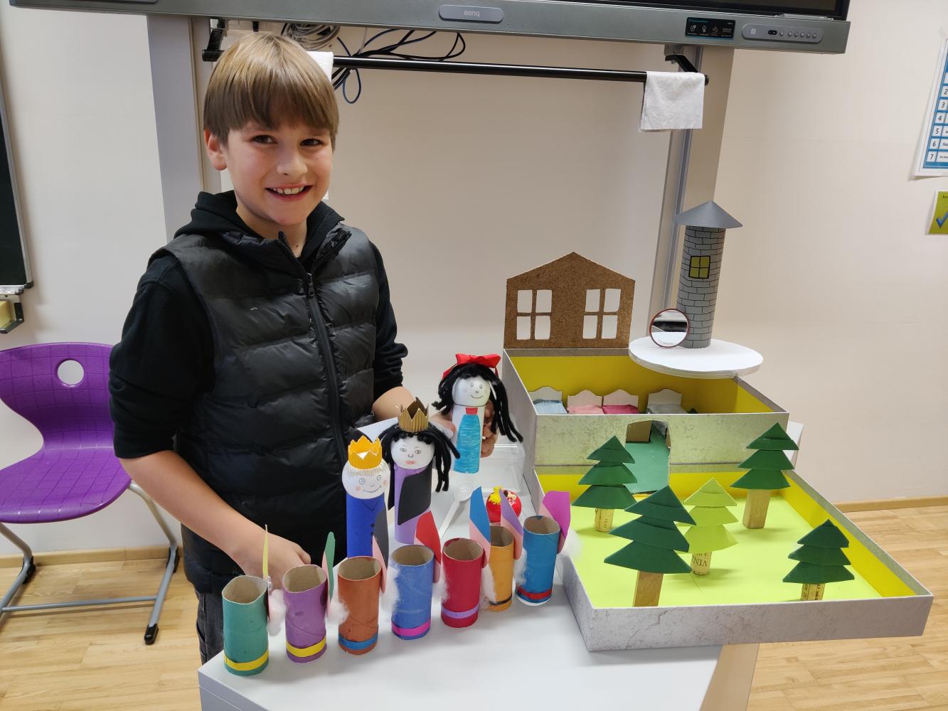 Mit großem Stolz präsentierten die Kinder ihre Werke, darunter Szenen aus Klassikern wie z.B. „Rotkäppchen“, „Rapunzel“ und „Hänsel und Gretel“. Jedes Märchen wurde detailreich mit selbst gebastelten Figuren, liebevoll gestalteten Hintergründen und kreativen Materialien dargestellt.