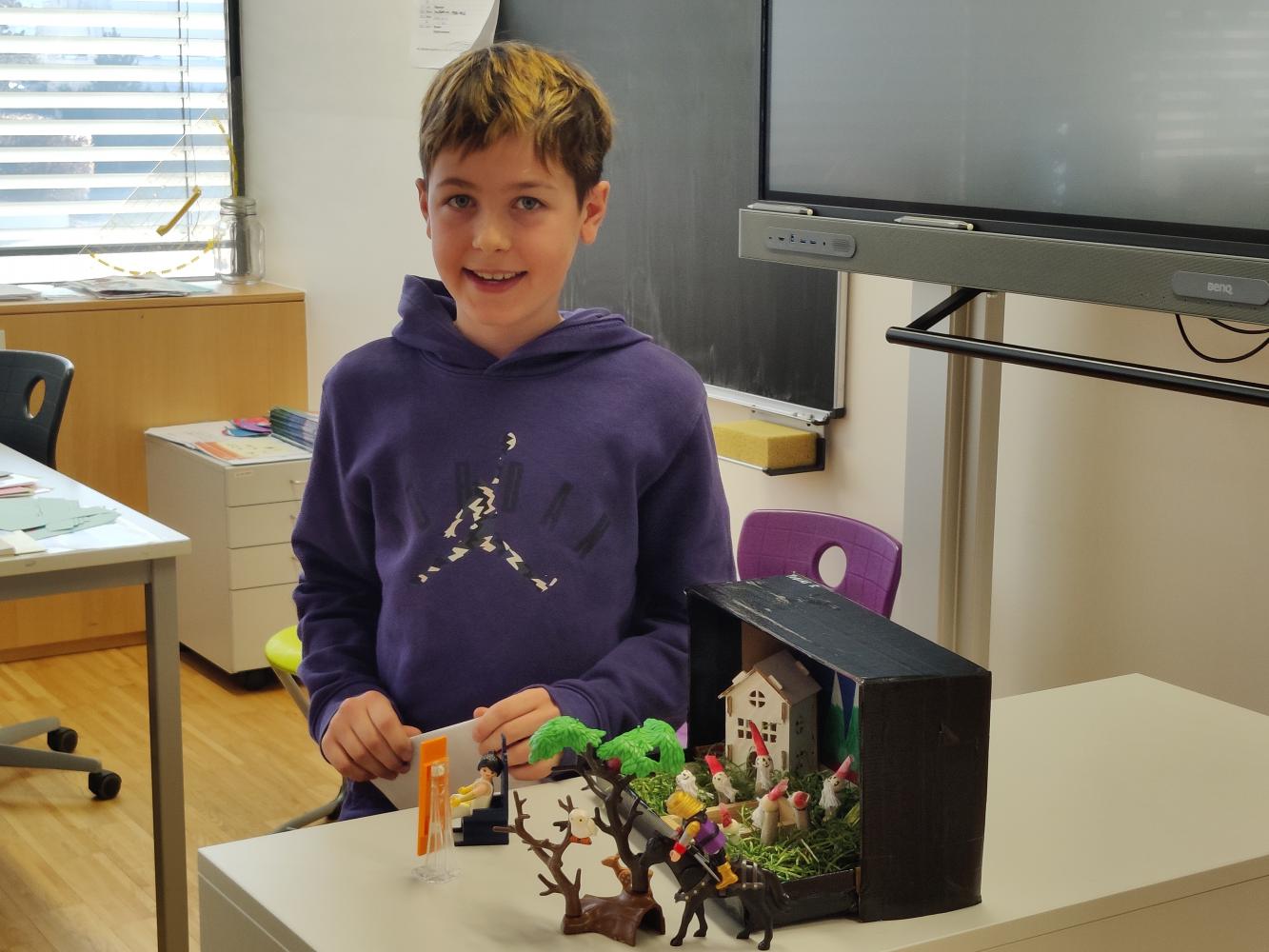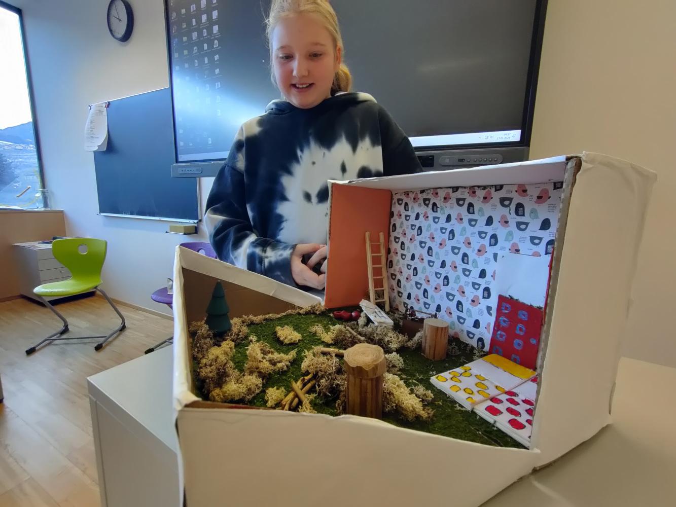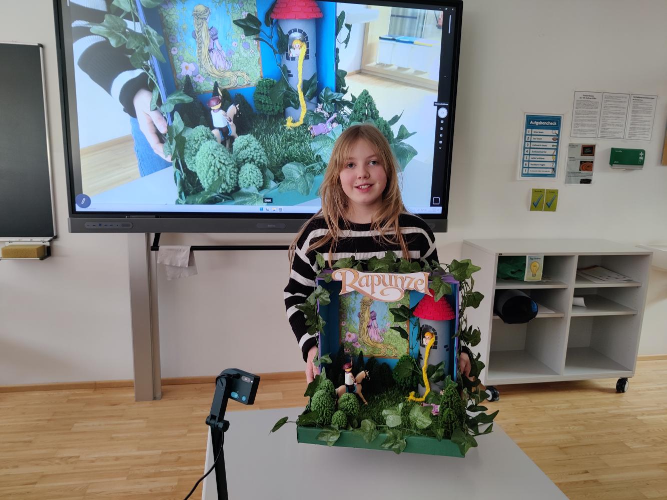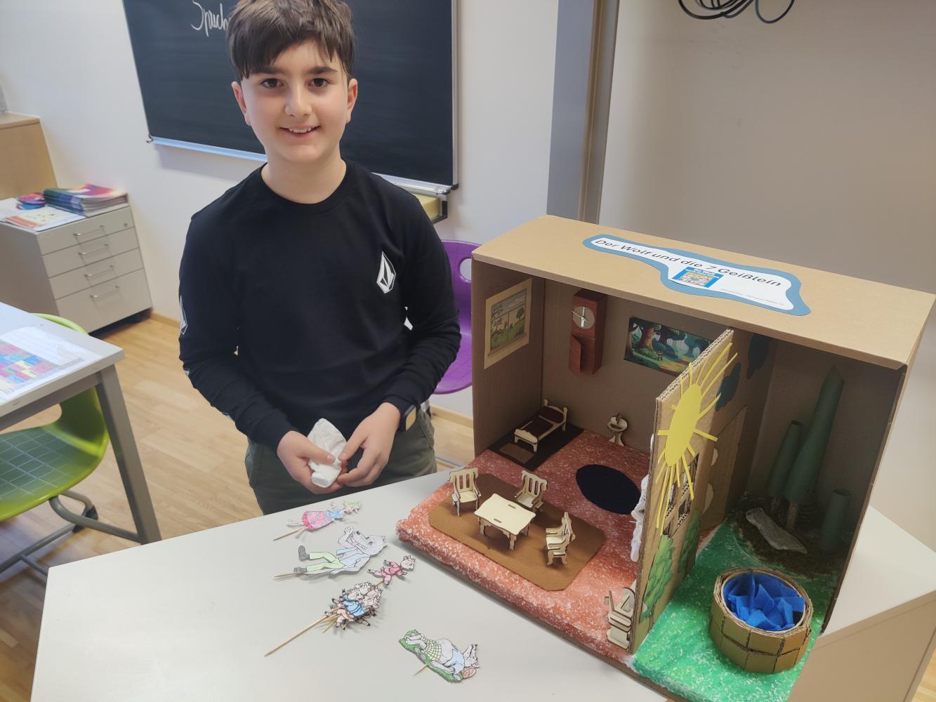 Besonders spannend war die Präsentation, bei der die Schüler:innen nicht nur ihre Märchenboxen zeigten, sondern auch den Inhalt der Geschichten erzählten und ihre gestalterischen Ideen erklärten. So wurde die Welt der Märchen für die gesamte Klasse lebendig und greifbar.