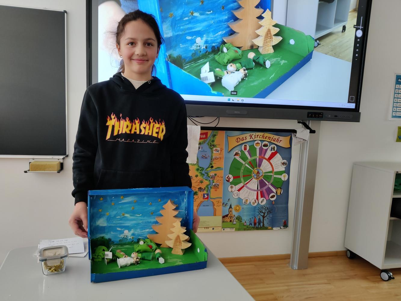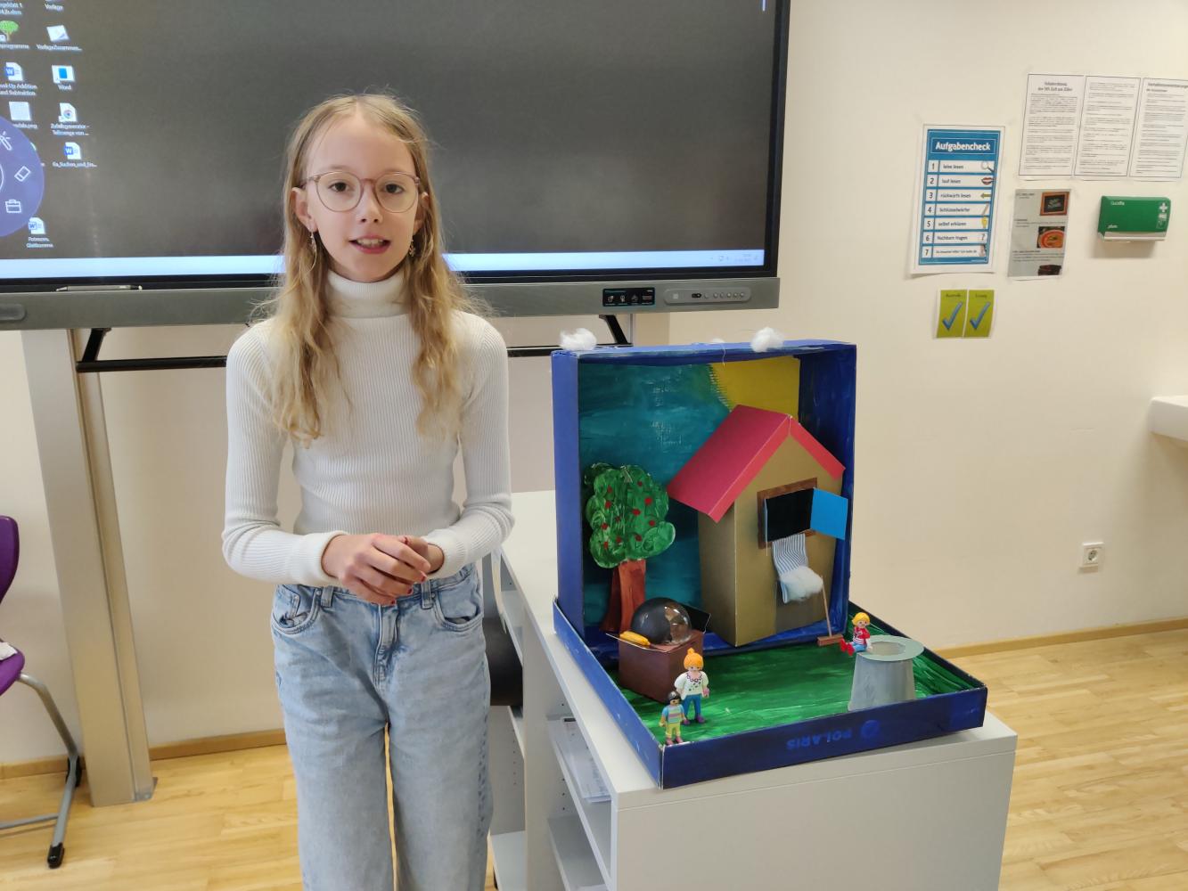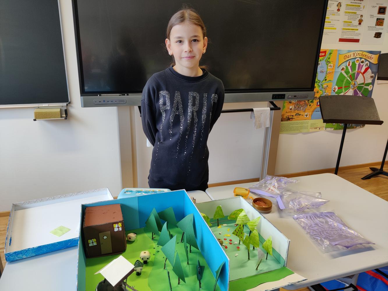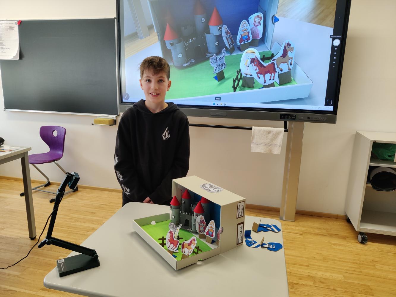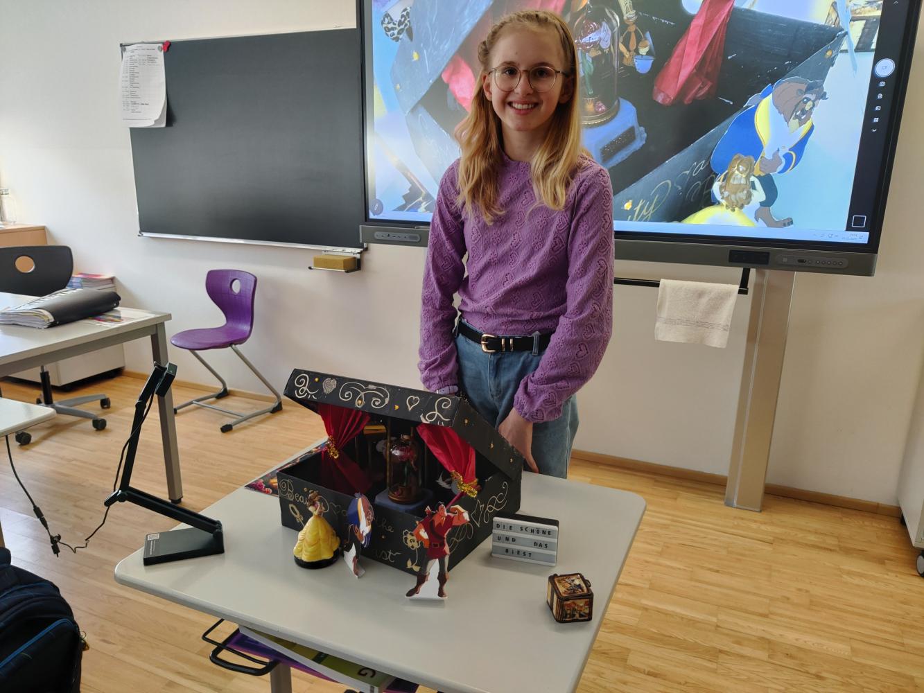 Besonders spannend war die Präsentation, bei der die Schüler:innen nicht nur ihre Märchenboxen zeigten, sondern auch den Inhalt der Geschichten erzählten und ihre gestalterischen Ideen erklärten. So wurde die Welt der Märchen für die gesamte Klasse lebendig und greifbar.