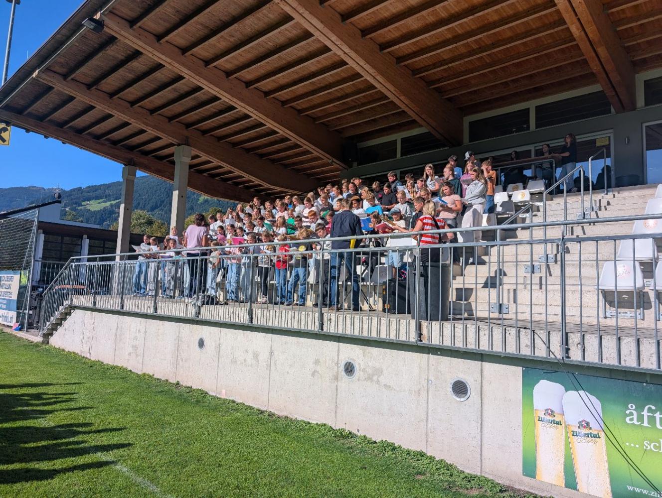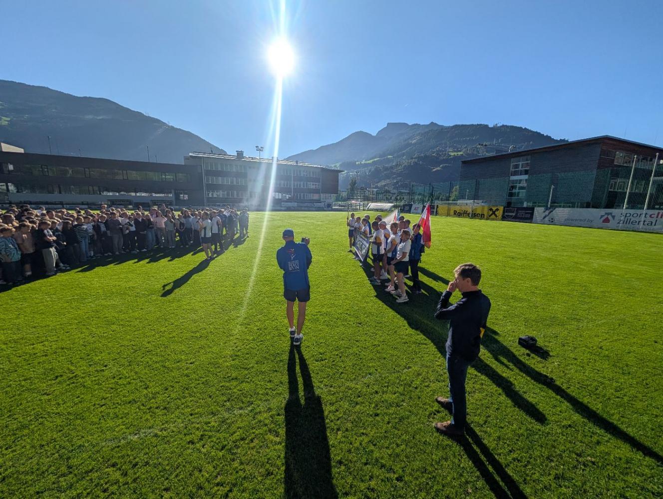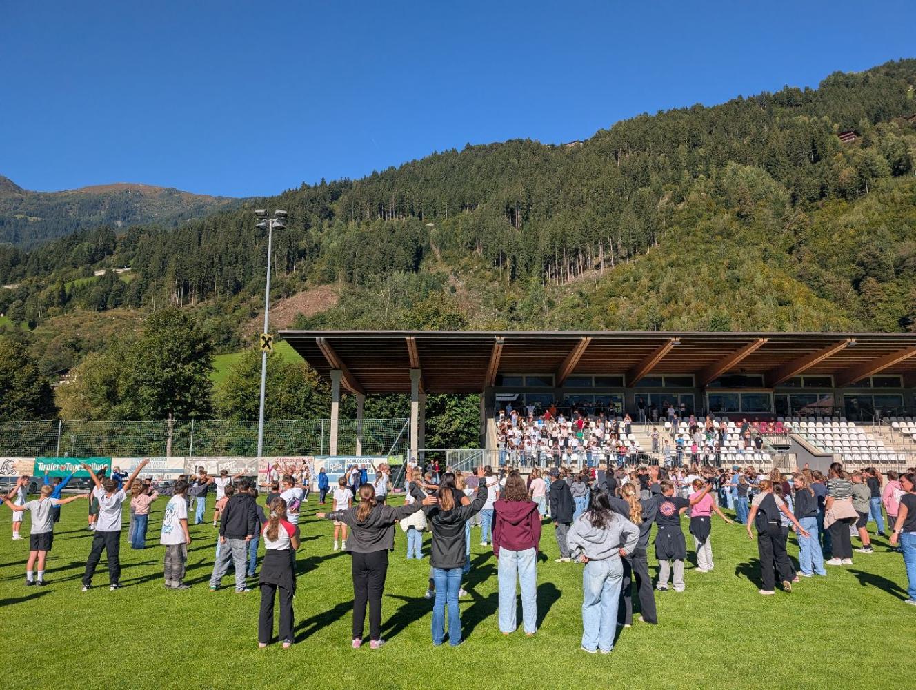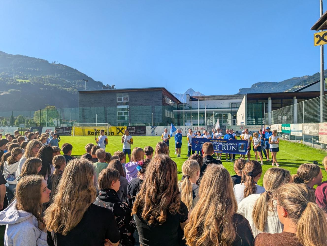 Die Etappe des gestrigen Tages führte das internationale Team von Gerlos über Zell am Ziller und Mayrhofen bis nach Innsbruck, wo am Abend das Tagesziel erreicht wurde. Auf diesem Weg machte die Friedensfackel auch bei uns Halt, um gemeinsam ein starkes Zeichen für Zusammenhalt und Respekt zu setzen. Zur feierlichen Begrüßung empfing unser Schulchor die internationalen Läuferinnen und Läufer und sang unter der Leitung von M. Dissauer das Lied „We Are the World“. Musikalisch begleitet wurde der Chor von C. Fiechtl und F. Joast.
