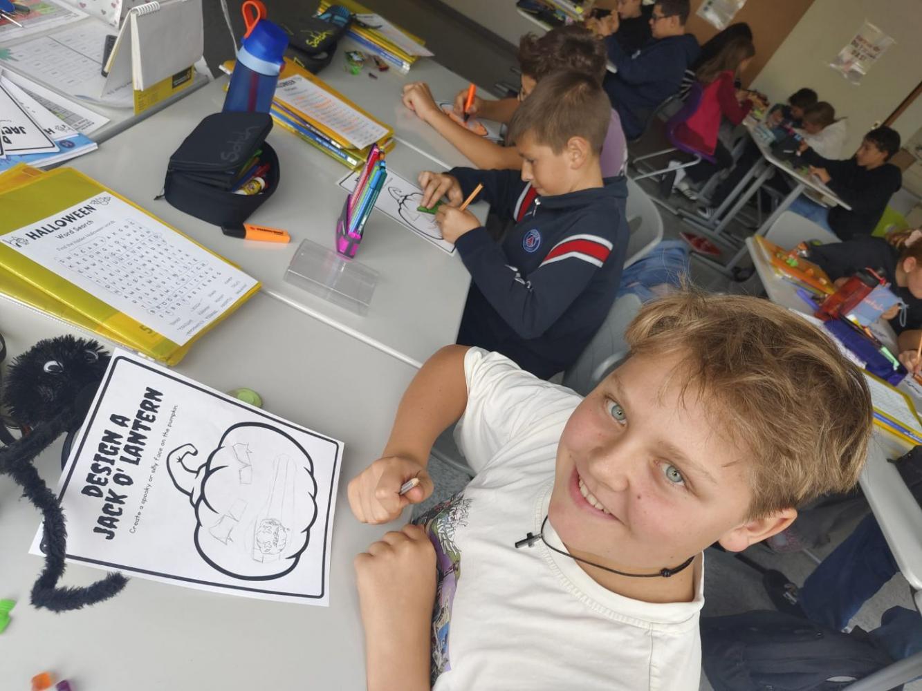 Halloween started over 2.000 years ago with the Celtic festival. People believed ghosts returned to Earth that night. Today it is a fun celebration with costumes, trick-or-treating and spooky stories. We practiced Halloween key words and did a spooky skeleton dance. Students also designed a scary Jack o’ lantern. Here are some spooky, creative and laughter-filled activities from 13-years-olds waiting for you …
